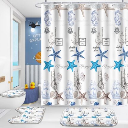 Price: (as of – Details) Product description Poedist 4 Pcs Kid Bathroom Shower Curtain Set Cartoon Starfish Series-Decorate for you