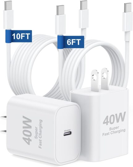 Essri 40W for iPhone 17 16 Pro Max Charger Fast Charging,2-Pack Super Fast USB C Charger Block for iPhone 16/16 Pro Max/15 Plus Series/iPad Pro,PD 3.0 Wall Charger with 6FT&10FT Long C Cable