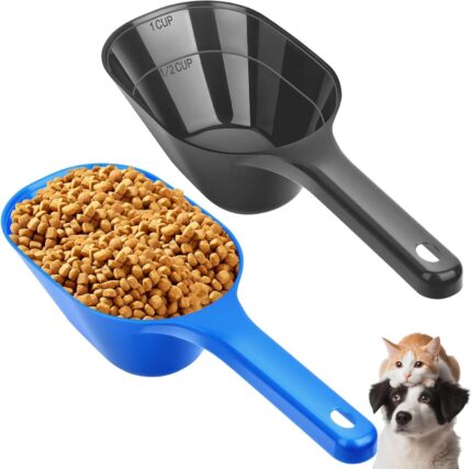 2 Pack Dog Food Scoop, 1 Cup Pet Food Scoop With Measuring Lines (Black and Blue)