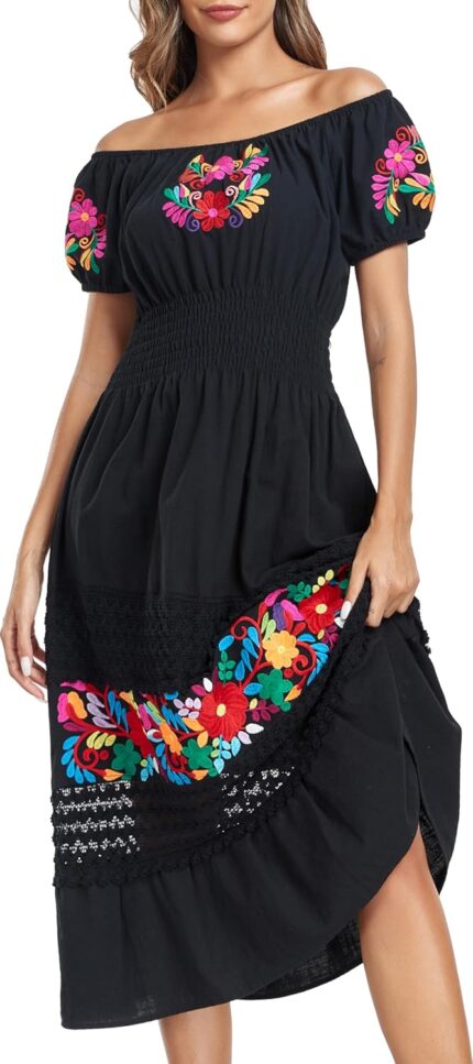 Price: (as of – Details) Product description YZXDORWJ Women’s Mexican Embroidered Dress Boho Peasant Dresses YZXDORWJ Womens Floral Emboriderd Dress