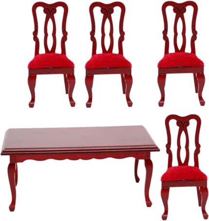NUOBESTY 5-Piece Miniature Tables and Chairs Set 1/12 Scale Dollhouse Dining Room Furniture for Decoration