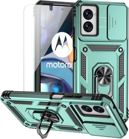 for Motorola Moto G Power 5G 2024 Case with Camera Lens Cover HD Screen Protector, Dual Layer Military-Grade Drop Tested Magnetic Ring Holder Kickstand Protective Phone Case (Dark Green)