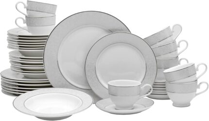 Price: (as of – Details) Bring refined elegance to your table with the Mikasa Parchment 40-Piece Dinnerware Set, featuring a
