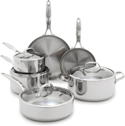 GreenPan Valencia Pro Tri-Ply Stainless Steel 10 Piece Cookware Set, Induction Ready Pots & Pans, Mirror Finish, Dishwasher Safe & Oven/Broiler Safe to 600F, Compatible with All Cooktops, Silver