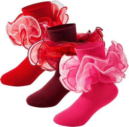 Girls Ruffle Socks Toddler 4-Layer Big Fluffy Lace Frilly Dress Socks Turn Cuff Fancy Pageant Sock Little Girl Kids