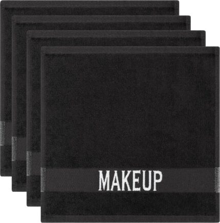 Cotton Paradise Makeup Remover Towels 4 Pack 100% Cotton 12×12 Inch Turkish Makeup Removal Face Cloths for Washing Face Soft Black Makeup Towel