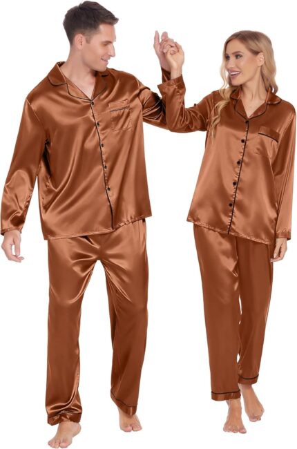 Price: (as of – Details) Product description Ekouaer Couples Matching Pajamas Silk Long Sleeve Sleepwear Satin pajama set is made