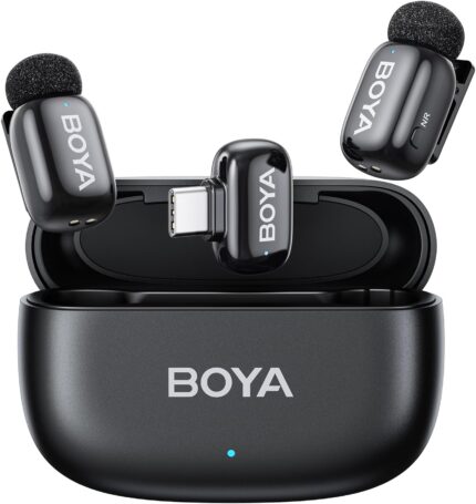 BOYA mini Wireless Lavalier Microphone for Android/Tablets/PC with USB C Plug,Noise Reduction,30H Battery Life with Charging Case,AI Voice Changer,Lapel Microphone Wireless for Video Recording Podcast