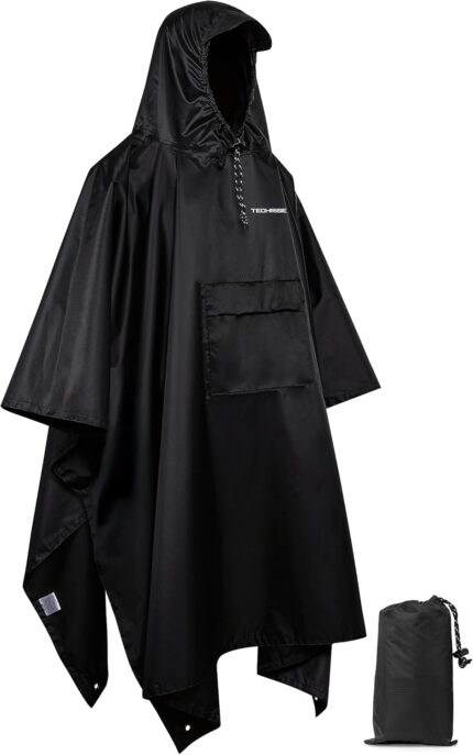 TechRise Hooded Rain Poncho for Adults with Pocket, Unisex Waterproof Lightweight Raincoat Reusable for Hiking Camping