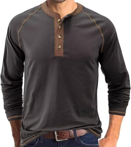 Men’s Henley Shirts Raglan Long Sleeve Casual Slim Fit Lightweight Fashion T-Shirts