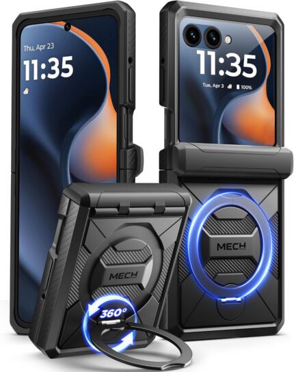 TONGATE for Motorola Razr 2025 Case/Razr 2024 Case with Screen Protector, [360° Spin Magnetic Stand] [Compatible with Magsafe] [Hinge Protection] Full-Body Military Drop Phone Cover, HD Black