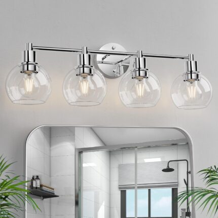 Espird 4 Lights Bathroom Vanity Light Fixtures Chrome, Bathroom Lights Over Mirror, Industrial and Farmhouse 4 Lights Wall Sconce, Polished Chrome Globe Vanity Lighting Fixtures