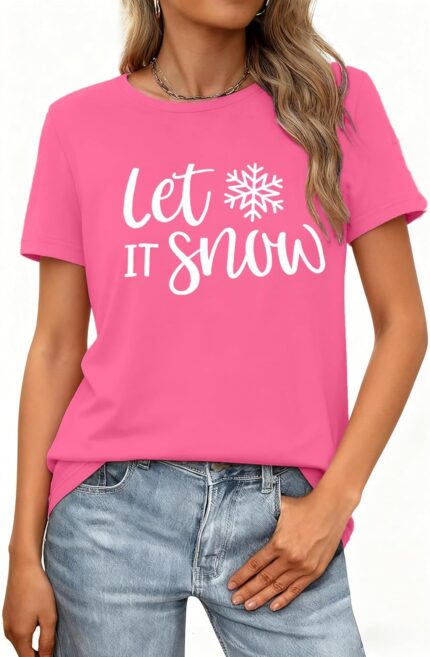 Christmas Shirts for Women Let It Snow Shirt Xmas Holiday Tshirt Cute Snowflake Print Tees Tops