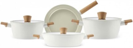 Price: (as of – Details) Product description Karaca Swiss Crystal Almond 7-Piece Induction Non-Stick Cookware Set, Cream Get ready for