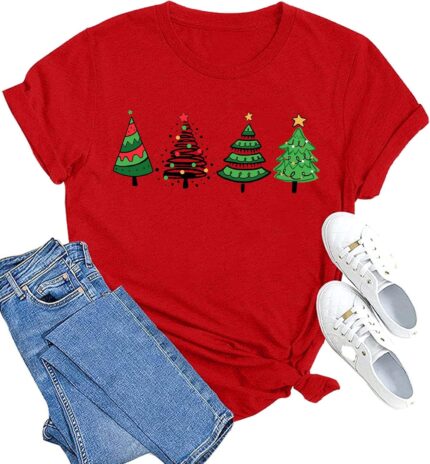 Price: (as of – Details) Product description Christmas Shirts for Women Merry Christmas Trees T-Shirt This is a Christmas short-sleeved