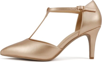 Soda Bahia ~ Women Pointed Toe Closed Back Counter Stiletto Mid Heel T-Strap Pump Shoe