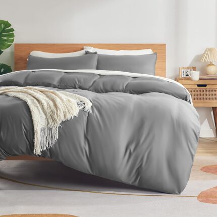 CozyLux Twin/Twin XL Comforter Set Dorm Bedding, 2 Pieces Light Grey Twin Extra Long Soft Luxury Cationic Dyeing Comforter for College, Light Gray Breathable Bed Set with 1 Comforter and 1 Pillow Sham