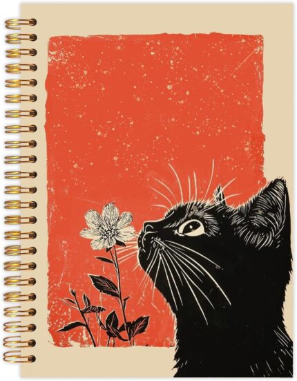 LZYRF Vintage Black Cat Floral Spiral Notebook Journal, Cats Lovers Gifts Notebooks for Note Taking, Cat Office Supplies, Retro Wildflower Botanical Hardcover Notebook, 5.5×8.3 Inch