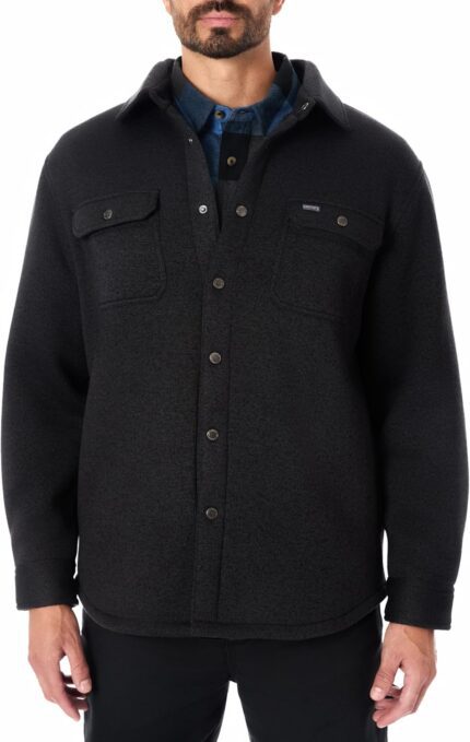 Smith’s Workwear Men’s Sherpa-Lined Sweater Fleece Snap Closure Shirt-Jacket