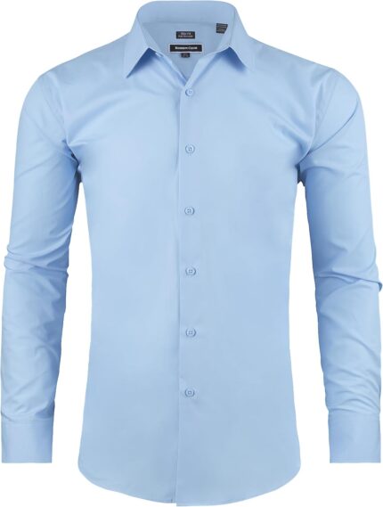Men’s Dress Shirt Slim Fit Long Sleeve Full Stretch Wrinkle-Resistant Business Casual Solid Button Down Shirts