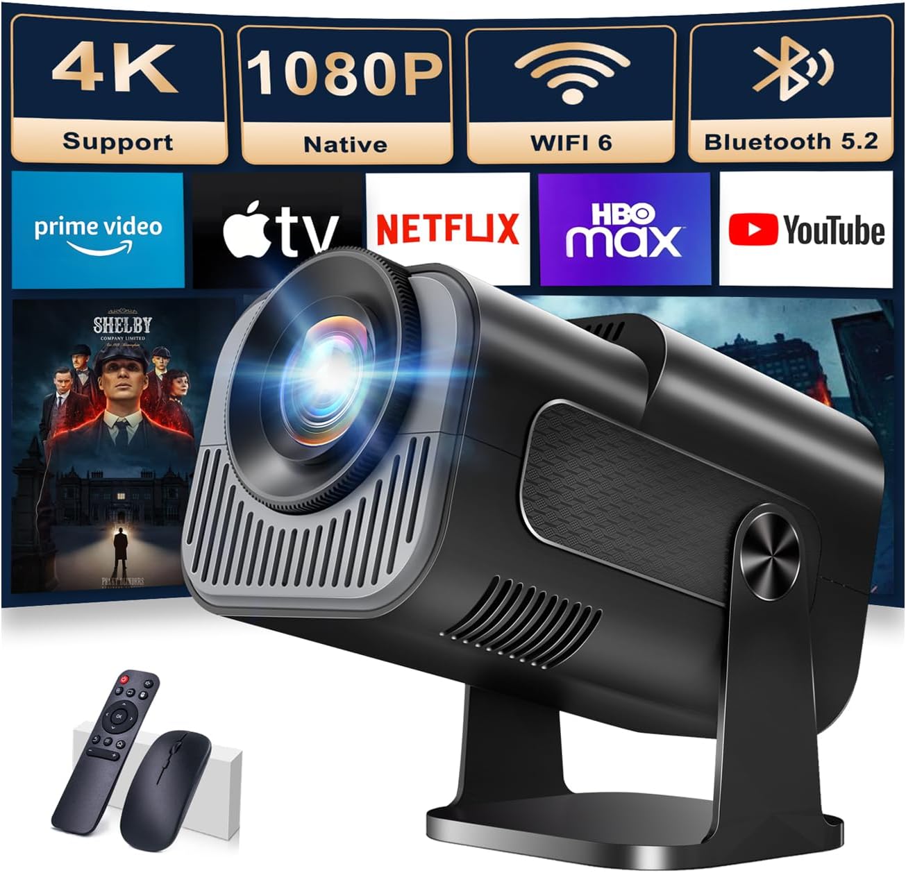 【Built-in Apps】Projector 1080P Full HD, 4K Projector with 180° Rotation,Portable Projector WiFi 6 & Bluetooth 5.2 Support,Featuring Auto Keystone Correction,HDMI/USB Connectivity Projector Black