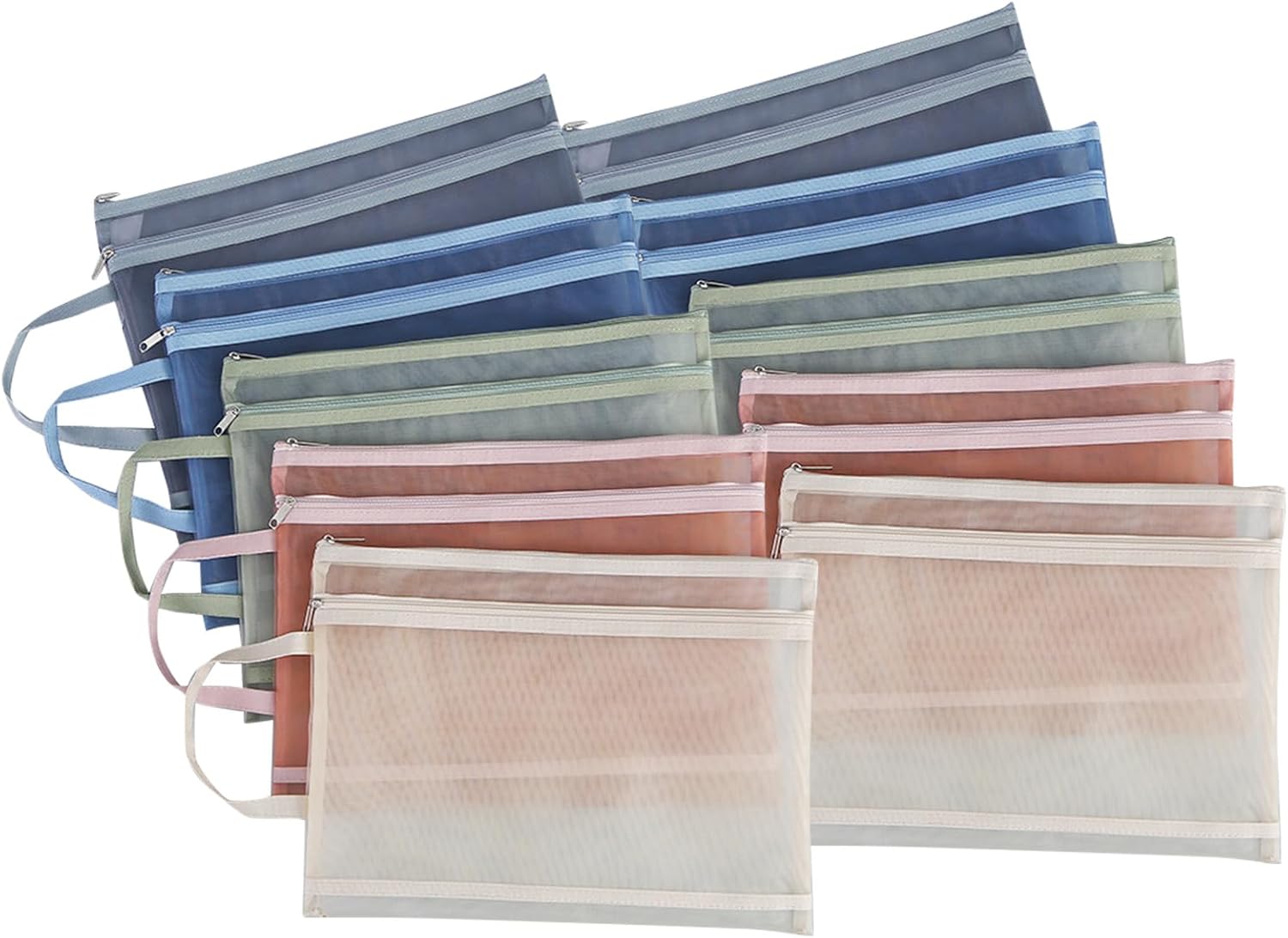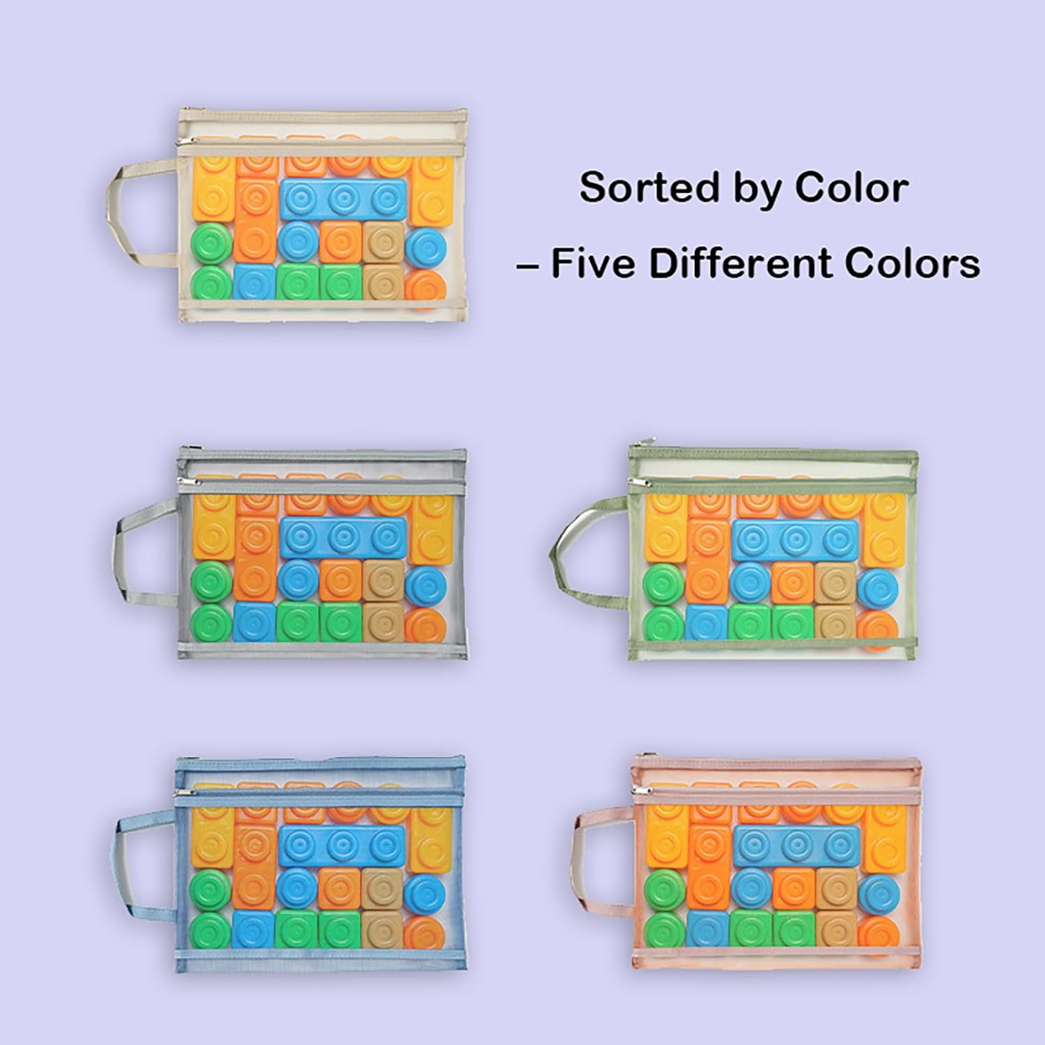10 Pack Two Layers Mesh Zipper Pouch Bags, Puzzle Building Block Sets Toy Storage & Organization, A4 Reusable Zipper Pouches with Handle for Playroom School Office Organization