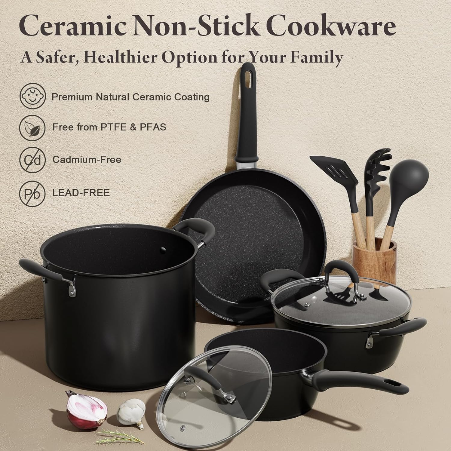 Healthy Ceramic Coating: Free from PFAS, PTFE, PFOA, lead, and cadmium, the natural ceramic coating ensures a safe, toxin-free cooking experience for your family