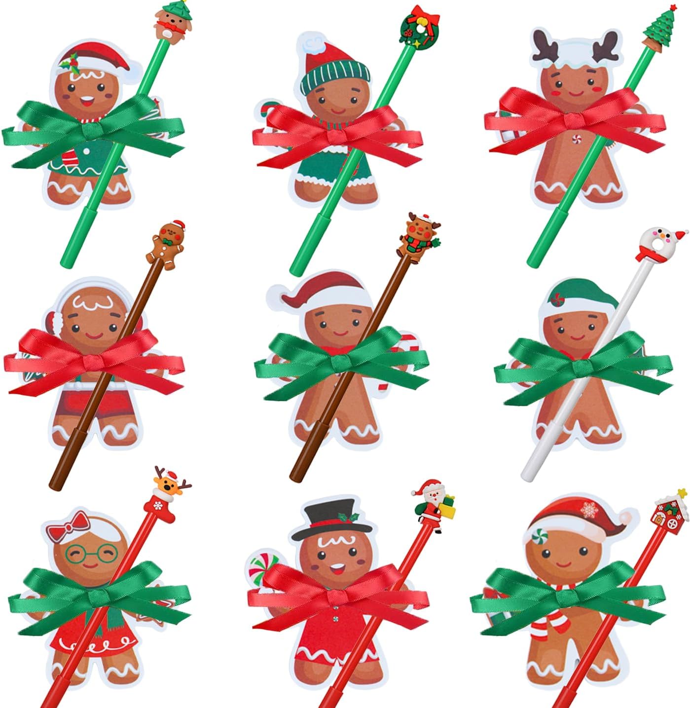Packaging Includes: 18 Christmas sticky notepads with gingerbread man patterns (9 styles), 18 Christmas-themed gel pens (9 styles such as trees, snowmen, Santa Claus, gingerbread man, etc.), and 18 colorful holiday ribbons (red and green). Rich combinations allow you to easily create a complete Christmas stationery experience, making it a great value for Christmas stationery set