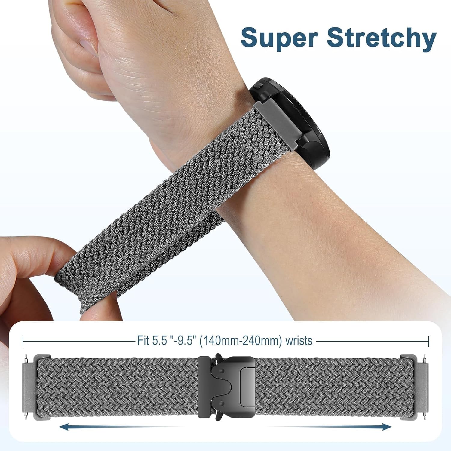 18mm Stretchy Braided Nylon Compatible with Garmin Venu 3S Watch Band/Venu 4 41mm/Vivoactive 4S/Vivomove 3S/Venu 2S/Forerunner 255S 265S, Parachute Buckle Elastic Sport Strap for Women Men