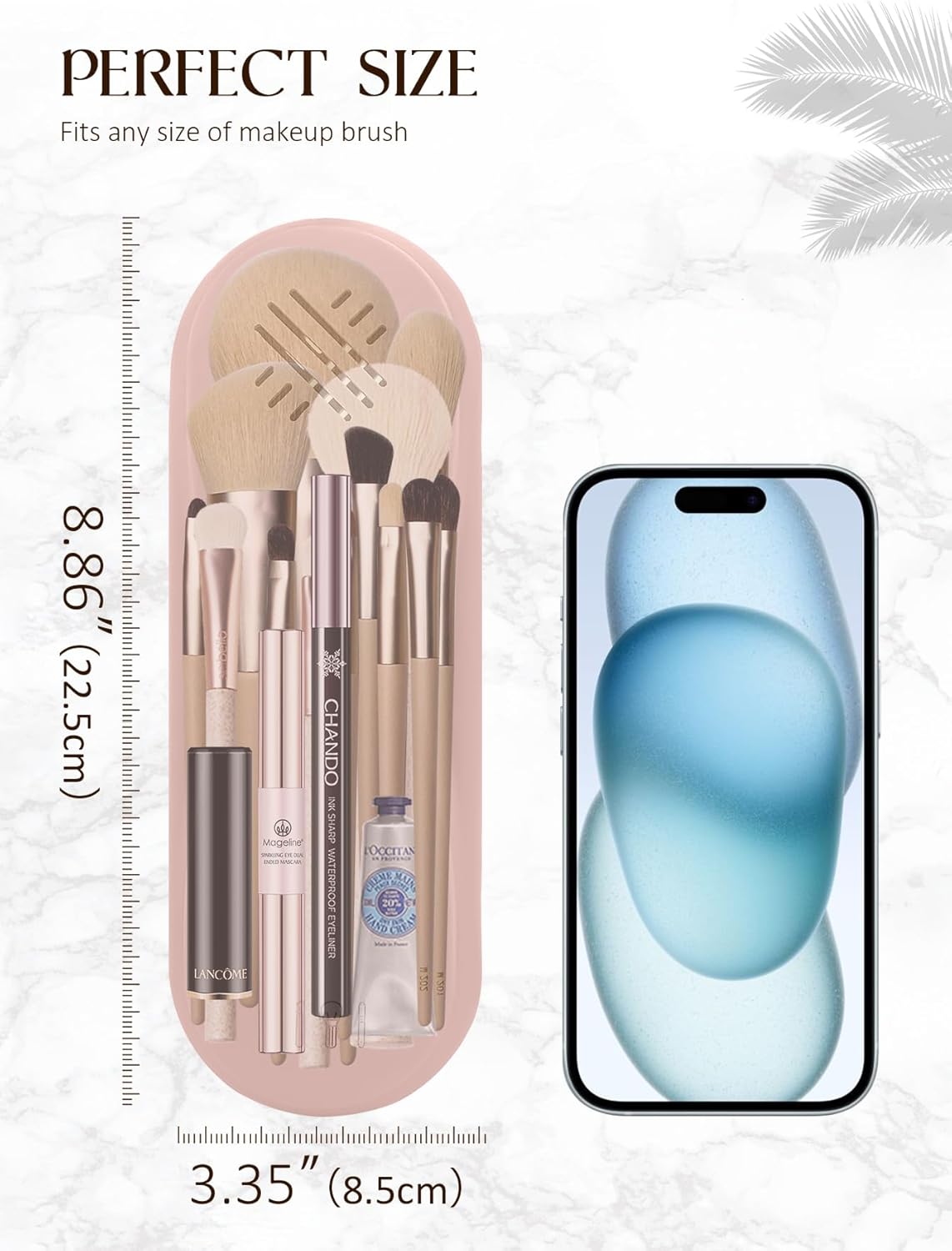 Fits all sizes of brushes and holds more than enough for the entire face.