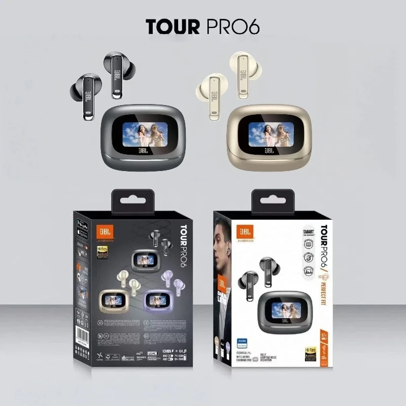2025 New JBL Tour Pro6 TWS True wireless Earphones LED Touch Screen Bluetooth Headphones Earbuds with mic HK version