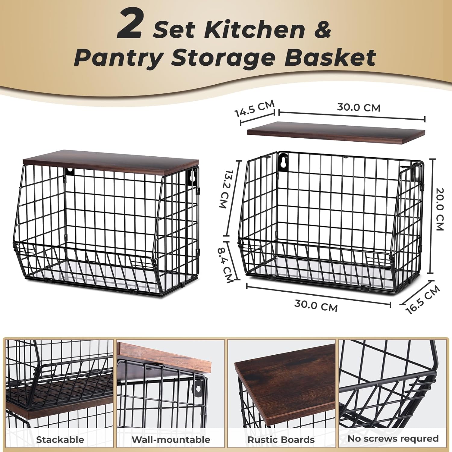 Stackable & Wall-mounted Metal Basket: Our hanging basket not only can stackable or countertop tiered use, but also can hang in the wall to maximize save your space. Storage baskets wood lid top add more storage room to put some small things like seasoning jar, magazine, office supplies, toiletries for bathroom etc