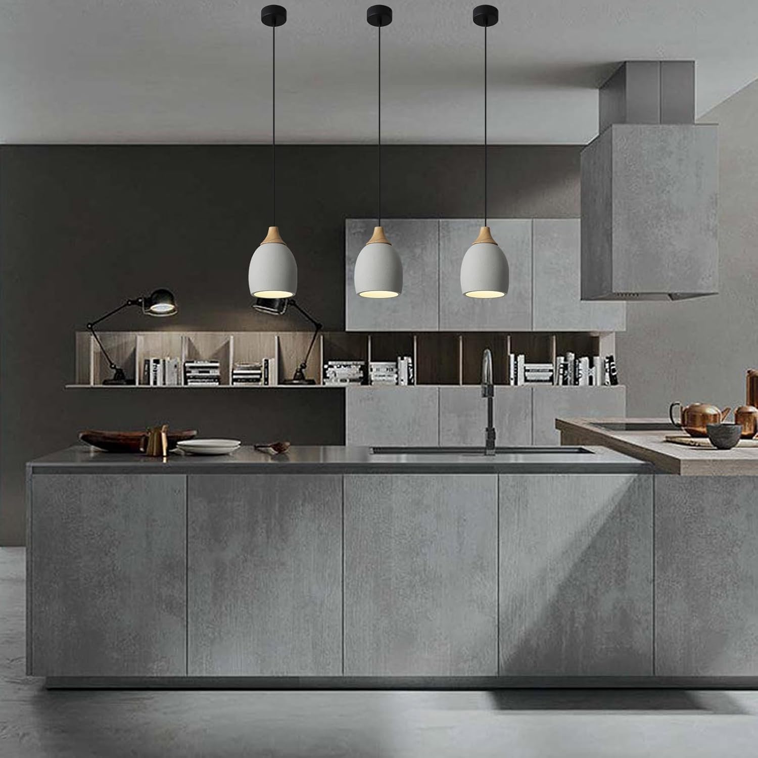 Concrete Kitchen Island Pendant Light. Wood and Concrete Design, Exquisite Details.