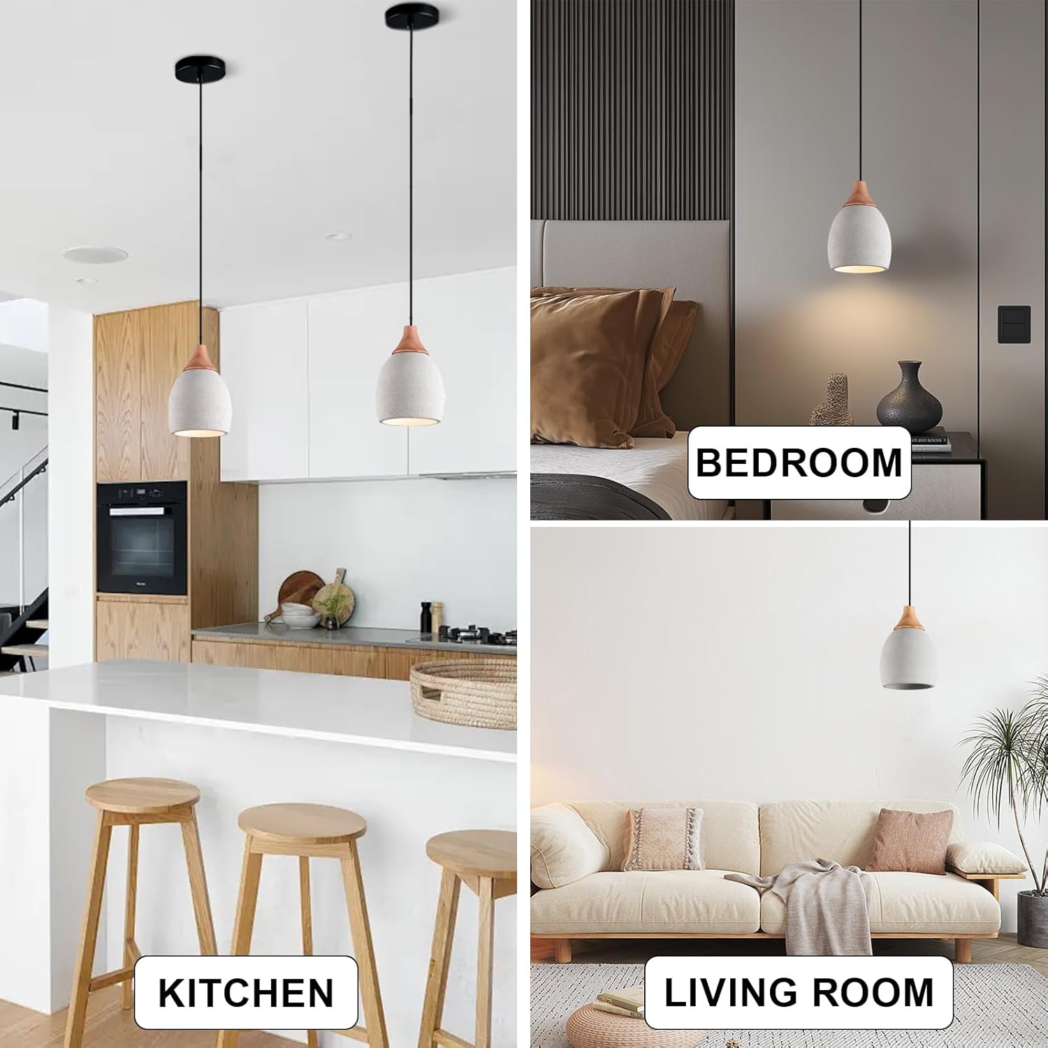 【Minimalist Design】Concrete wood hanging pendant lights are a great stylistic addition to urban environments. The industrial modern style of wood and grey cement design gives you a quiet beauty.