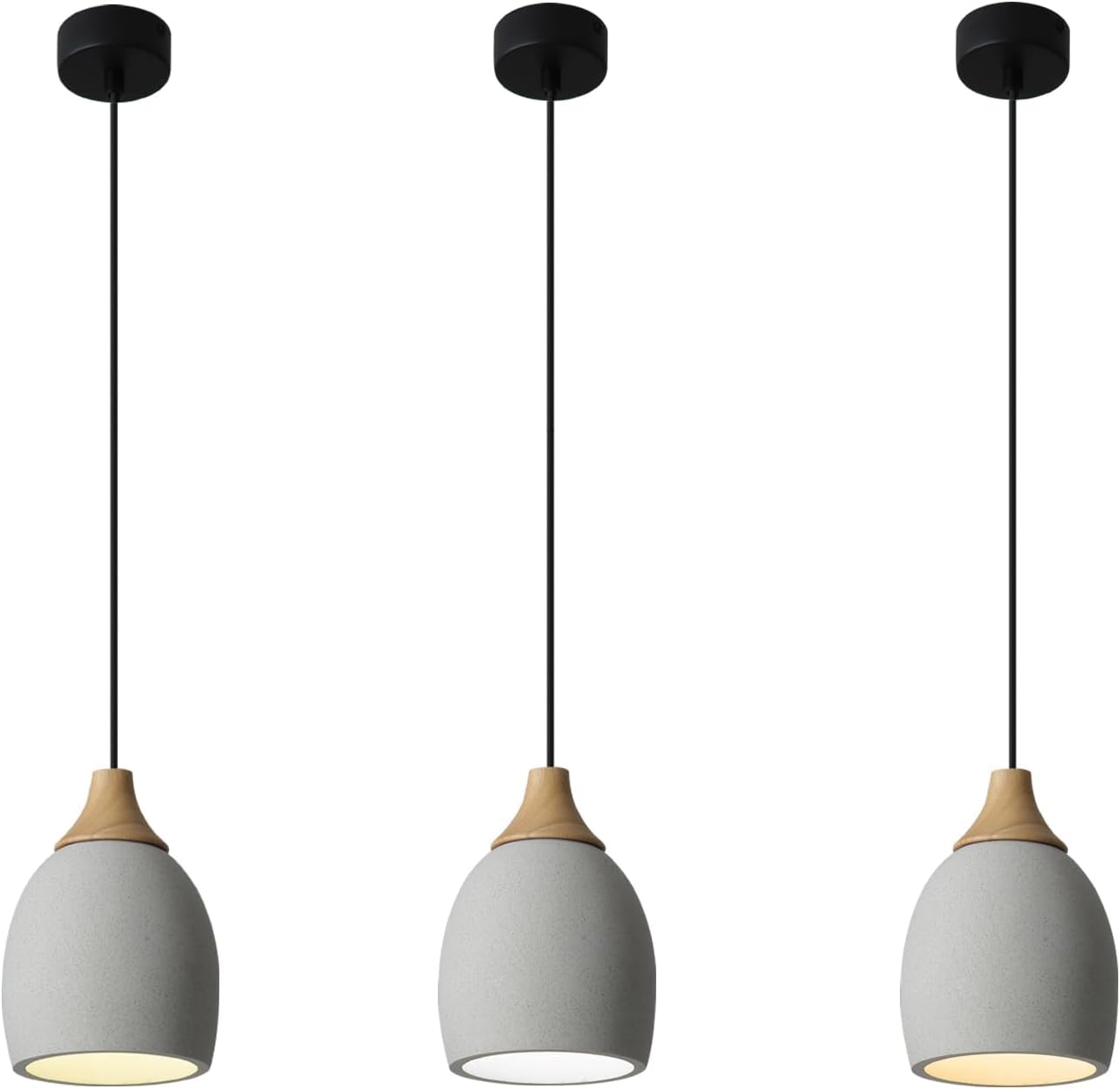 3 Pack Kitchen Island Concrete Pendant Lights with Dimmable LED Suspension Hanging Lamps 5.75In Cement Chandeliers Adjustable Hanging Ceiling Pendant Light for Foyer Bedsid Dining Room (Gray)