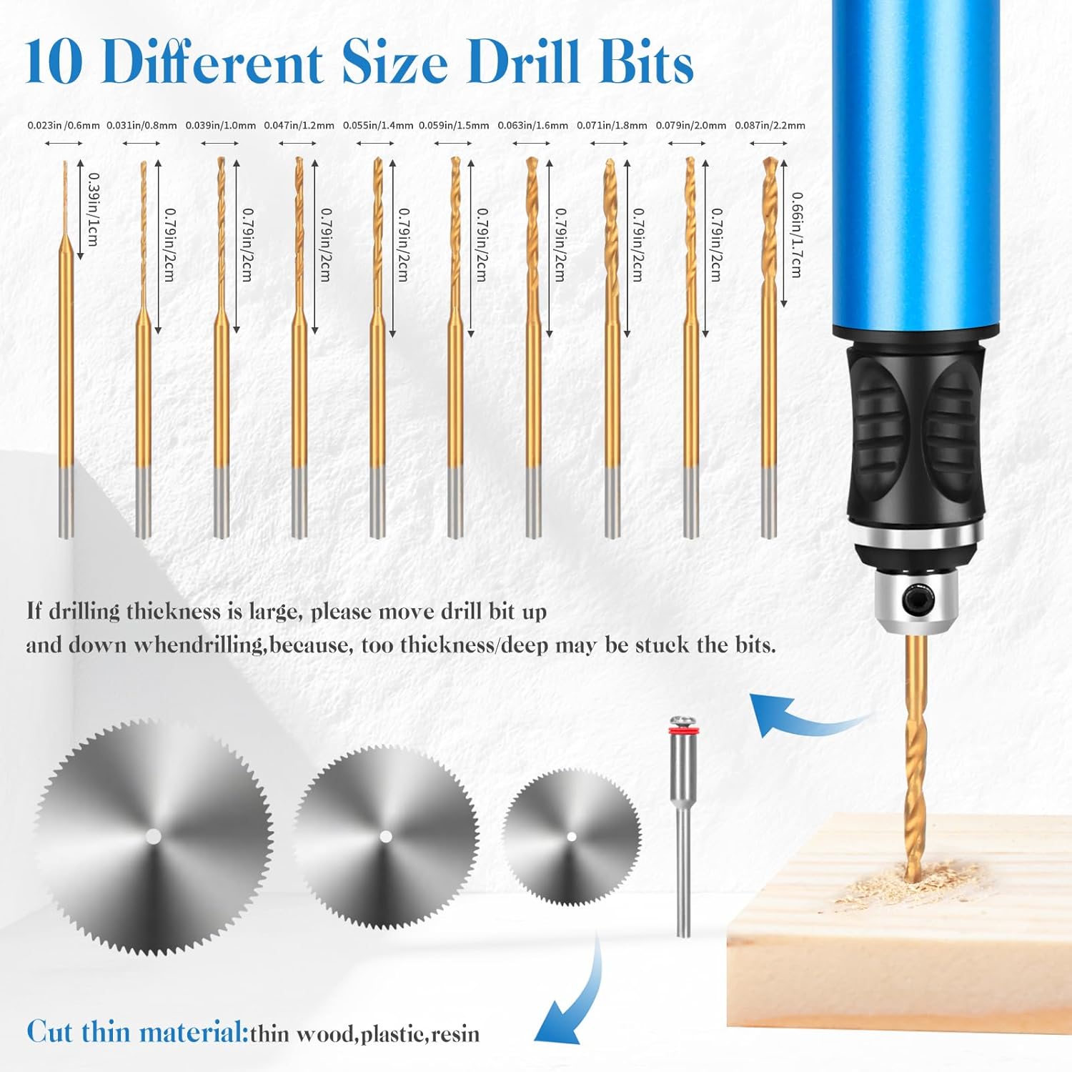Drills Tailored to Your Needs: The Kaibced hand drill set is meticulously crafted to cater to your precise drilling requirements. Featuring 10 different sizes of drill bits with cutting edge diameters ranging from 0.6mm to 2.2mm, each size is represented with one piece in the set. This comprehensive assortment ensures that you have the right tool at your disposal to tackle a variety of tasks with precision and ease