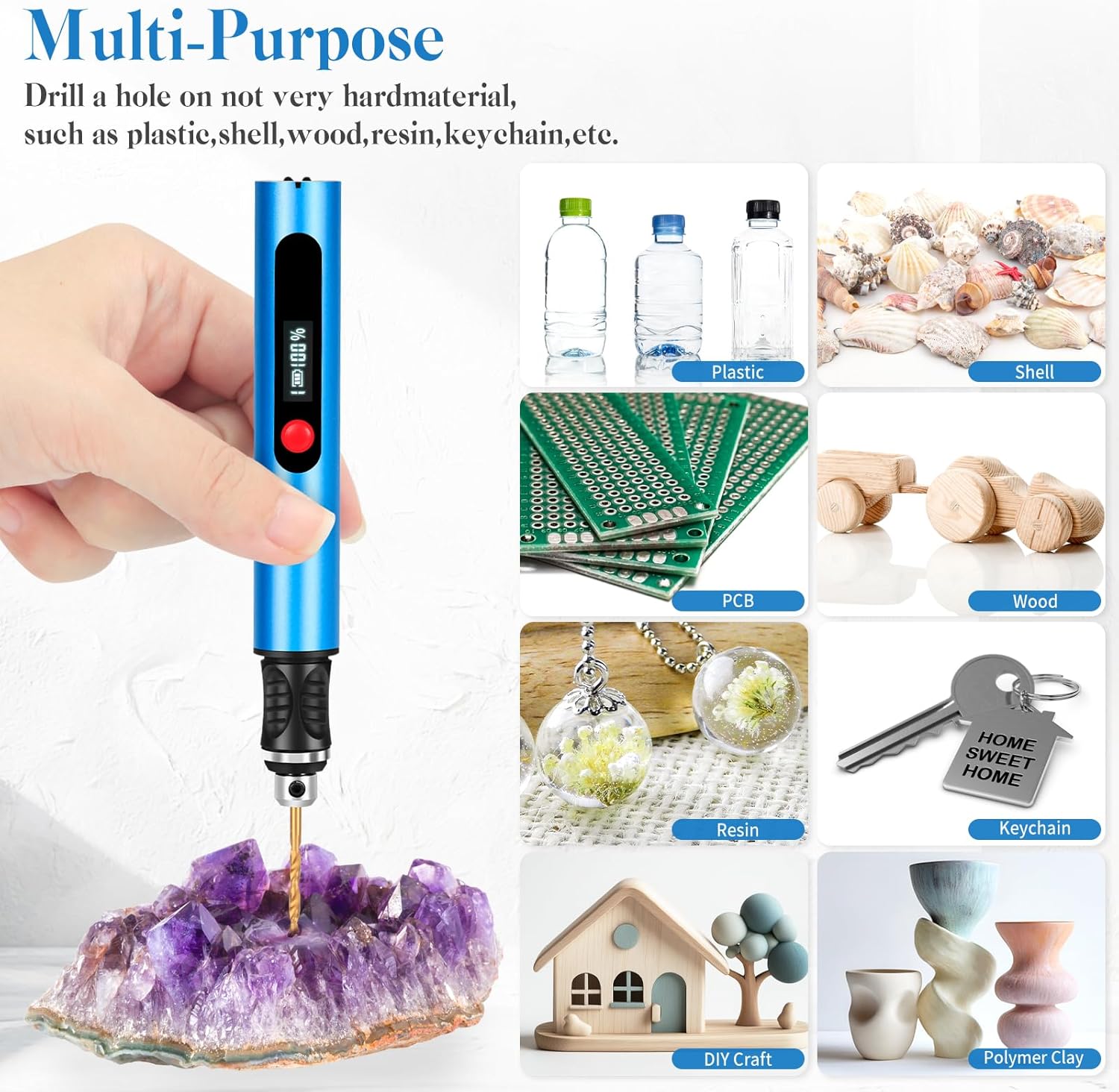 Unleash your creativity with the versatility of the Kaibced drill drivers. Whether you’re drill, sculpting, or decorating various surfaces, including plastic, leather, glass, ceramic, stone, wood, resin, keychains, and more, this compact tool delivers exceptional results in seconds