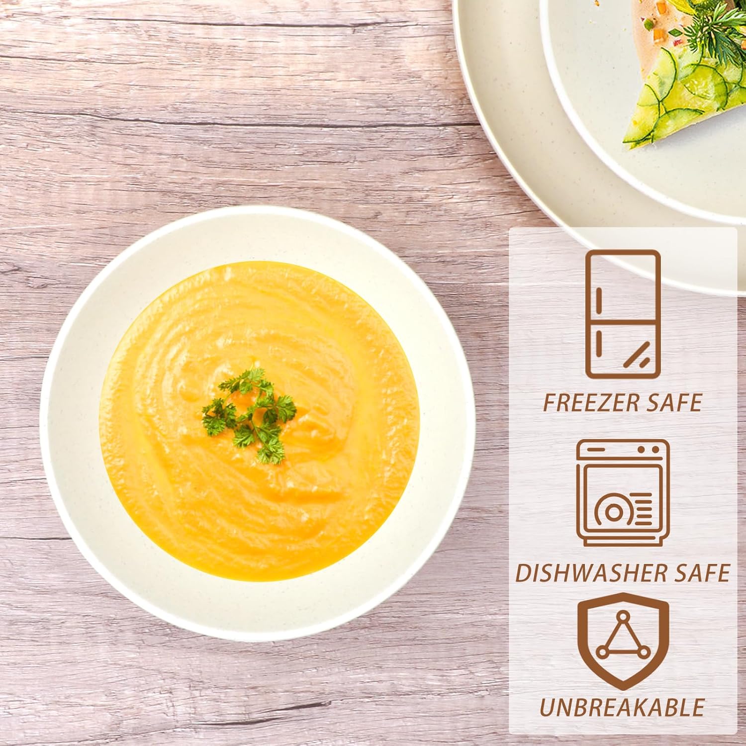 【Microwave & Dishwasher Safe】The wheat straw dinnerware set for adults and kids is suitable to use in the dishwasher, freezer or microwave, allowing you to cook and store food with confidence.