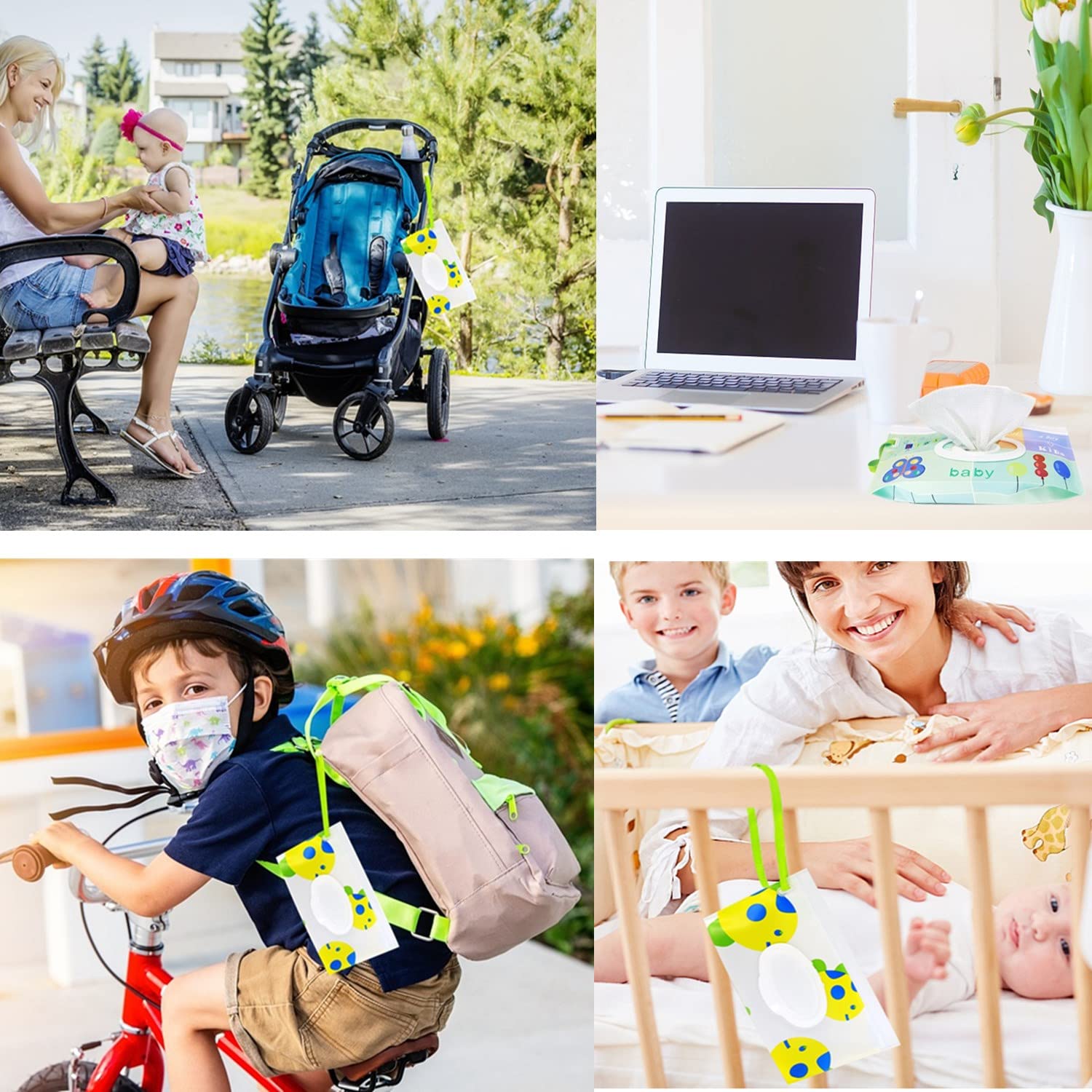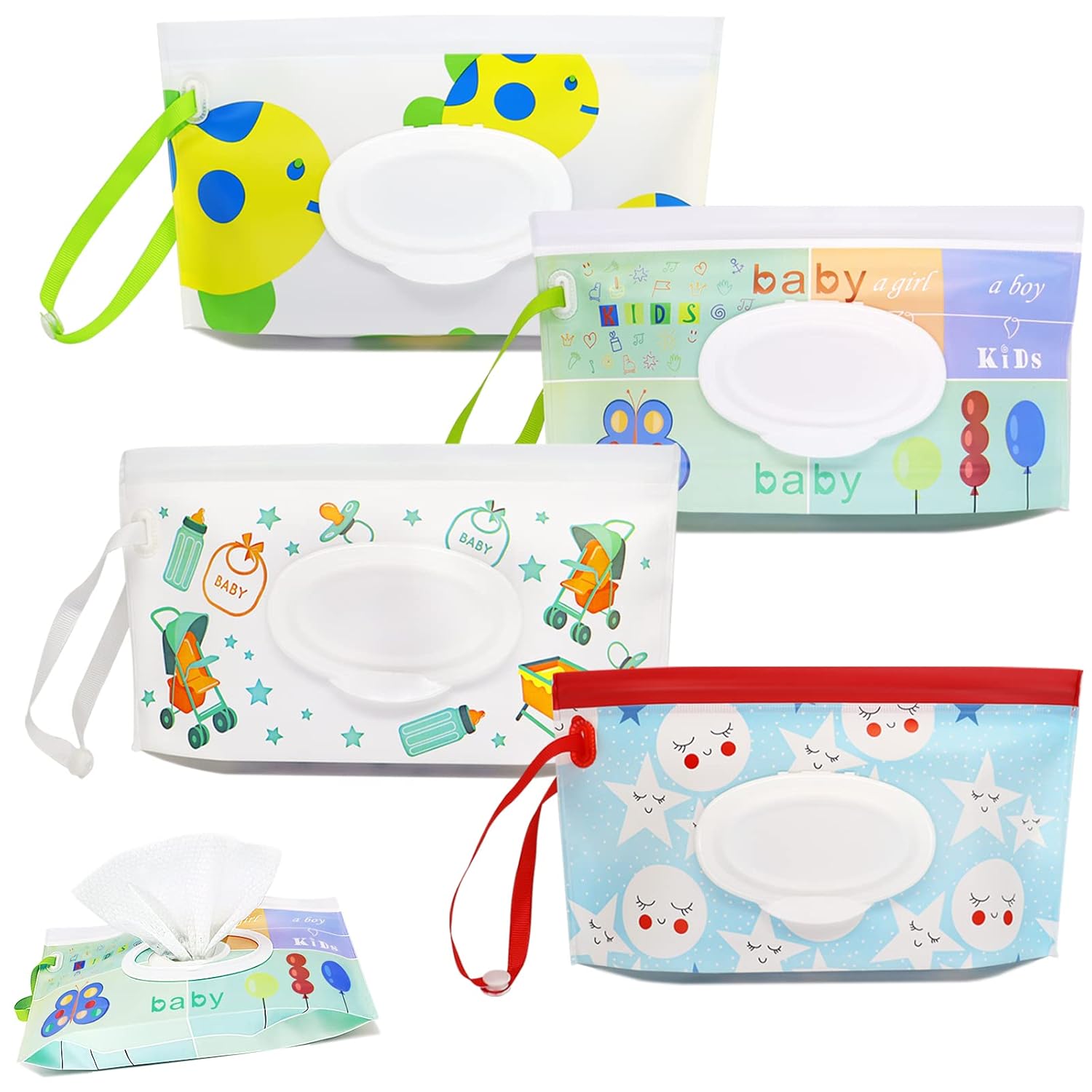 【Fashionable & Practicality】: Travel Baby wet wipes dispenser with four different color patterns for different occasions to carry out in daily use. fine ribbon rope can be hang the wrist or hung to anywhere, such as crib, backpack, strollers