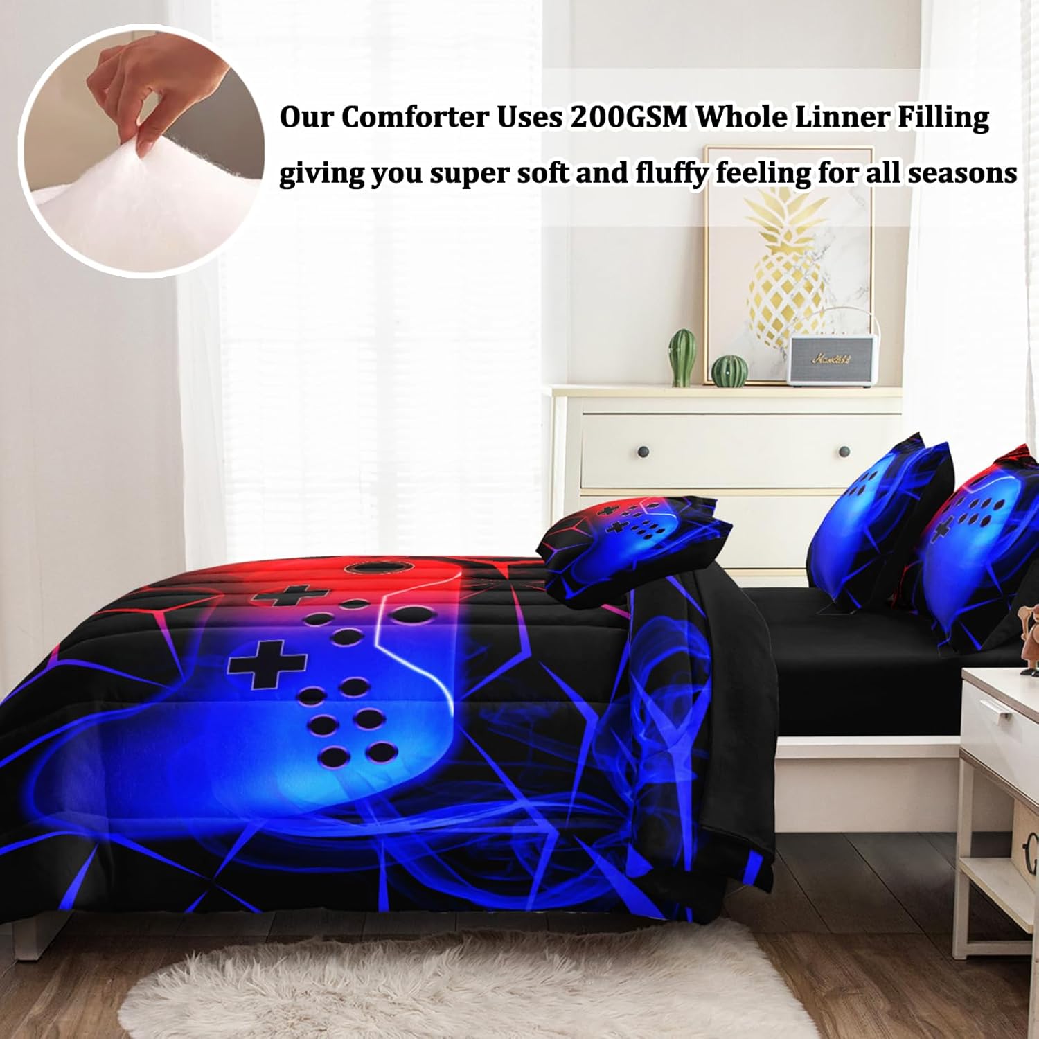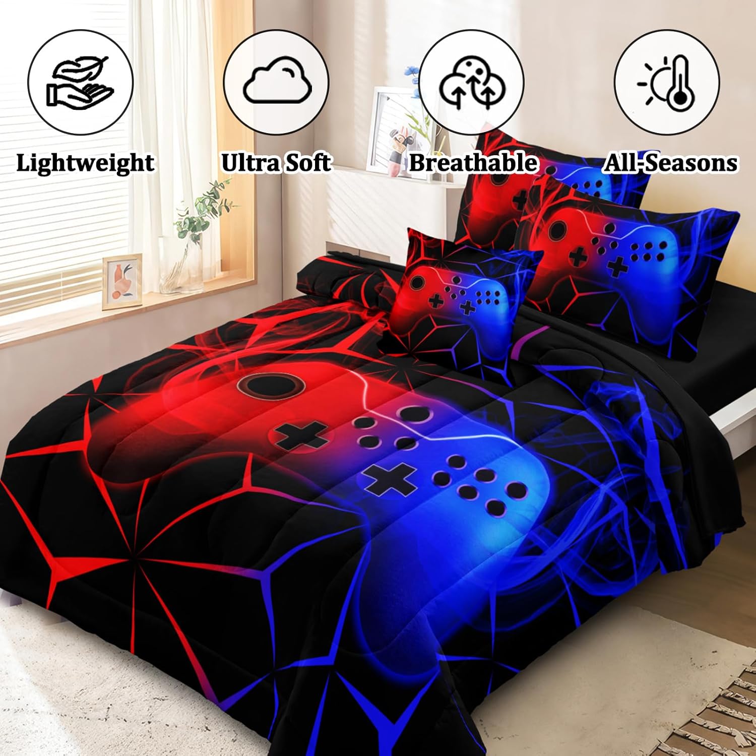 Great Choice: The gamer bedding set is a great choice for birthdays, holidays or any special occasion, and it’s great for decorating any bedroom, kids room, dorm room, RV or vacation home