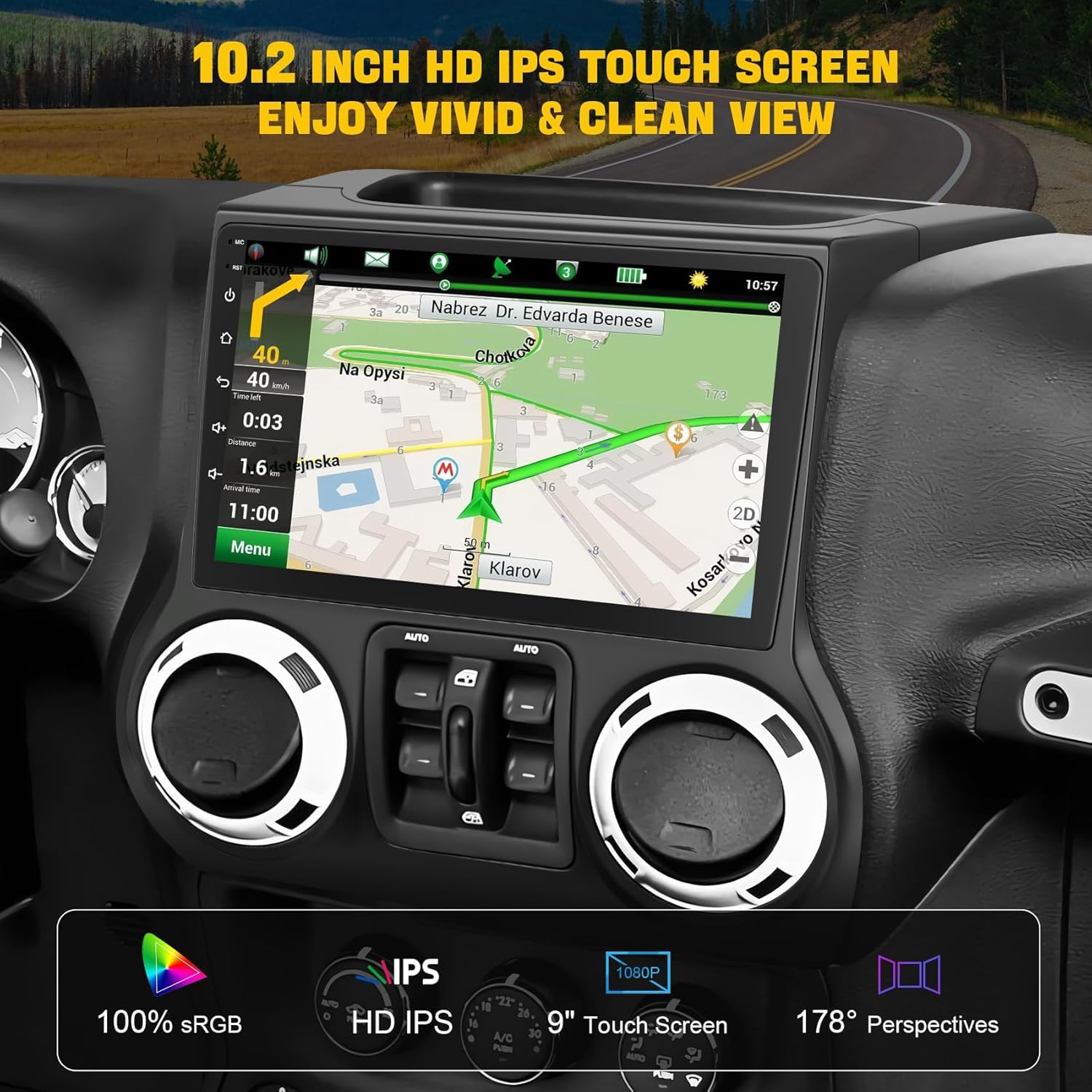 🚗【GPS Navigation & WiFi Connectivity】The 10.2 inch jeep wrangler car radio features a dual navigation system that supports both offline and online maps. This enables safe driving even in areas with weak or no cell reception. Additionally, by connecting to WiFi, you can access various phone functions directly on the Android car stereo, enhancing convenience and connectivity.