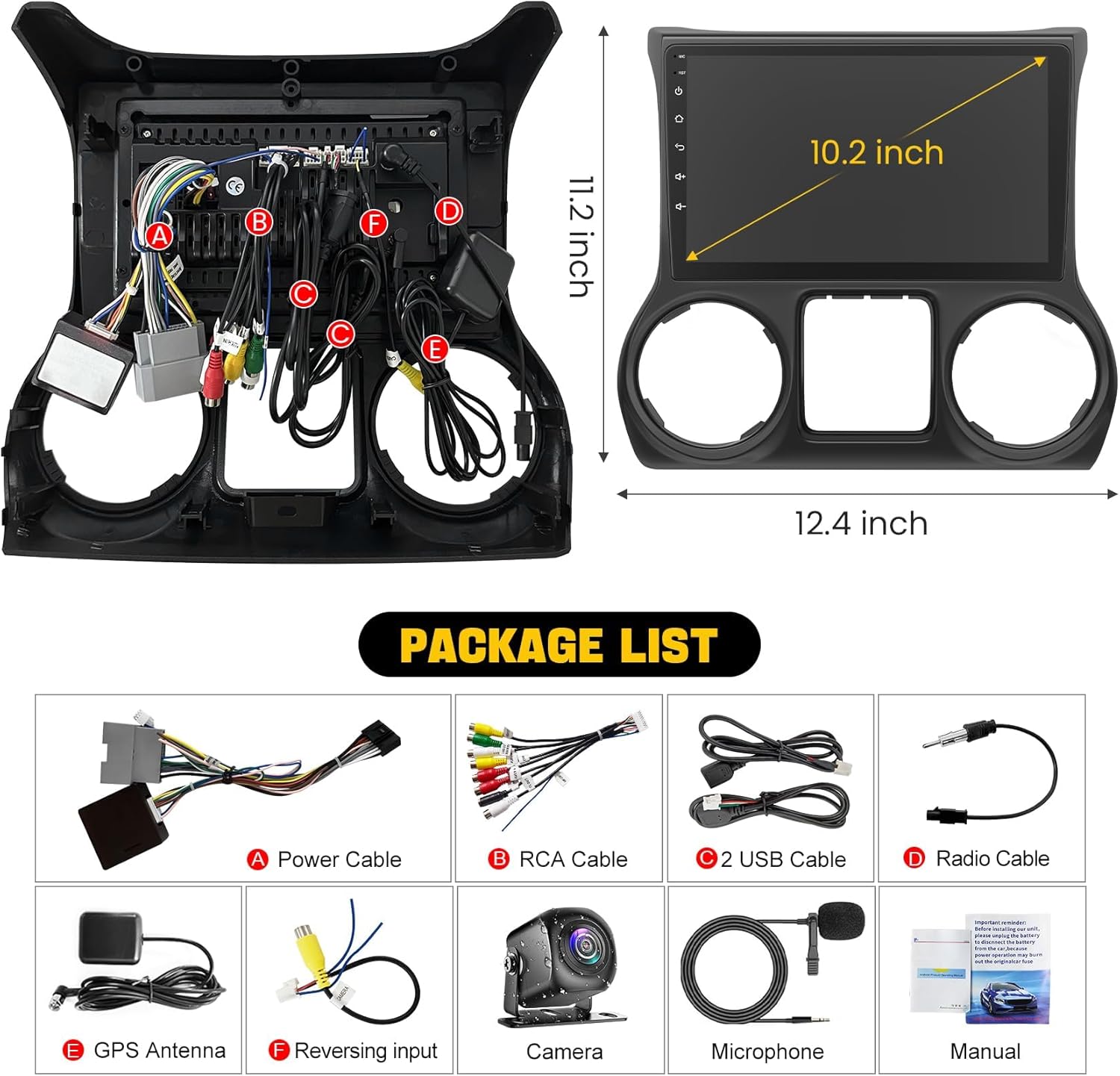 🚗【Convenient Steering Wheel Control & Backup Camera】10.2 inch Android touchscreen jeep wrangler car radio seamlessly integrates with the original steering wheel, allowing you to control the audio system easily and safely while driving. The stereo comes with a 170° viewing angle night vision waterproof backup camera, ensuring clear visibility while reversing, eliminating any concerns about potential blind spots.