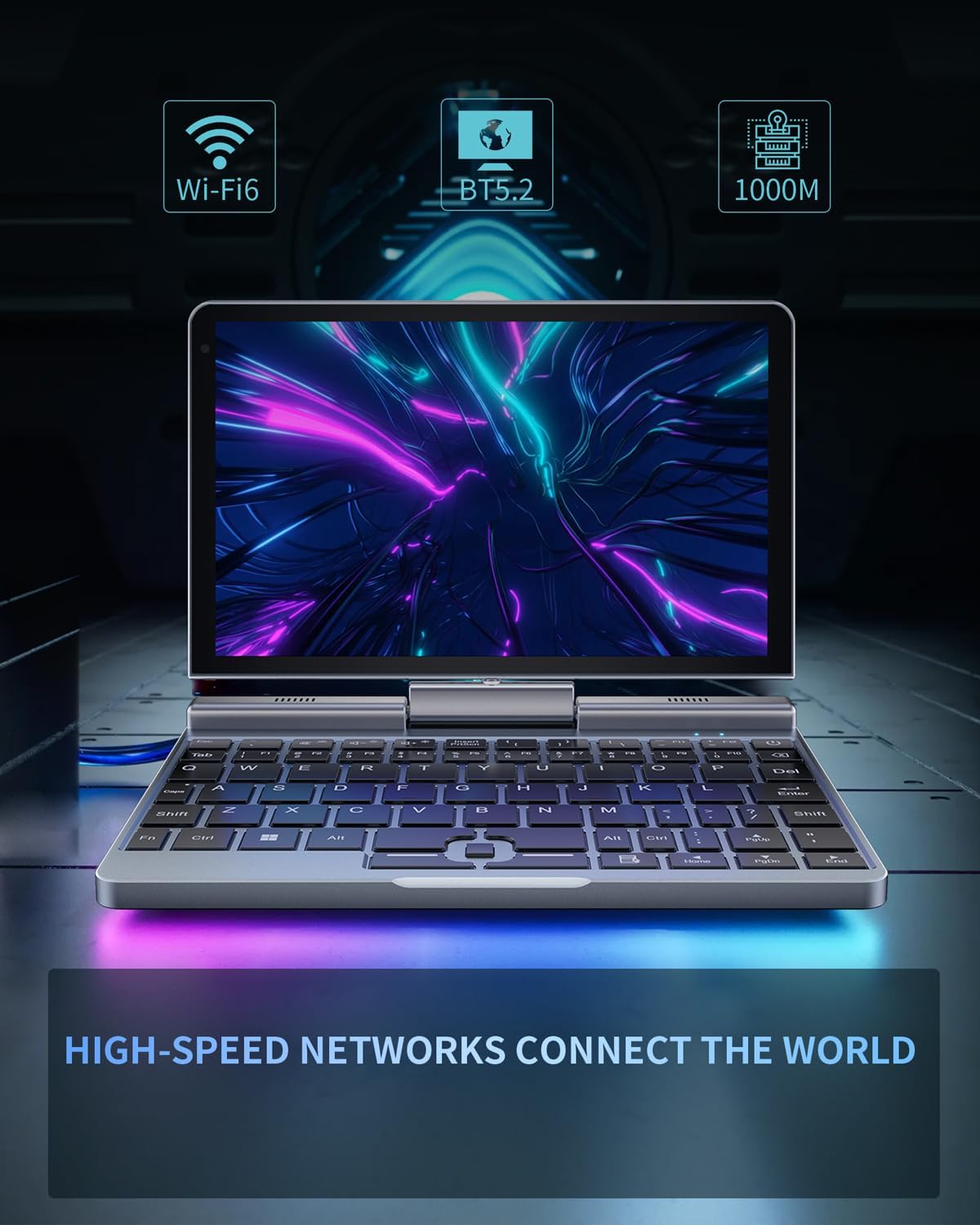 8 Inch 2-in-1 Mini Laptop,HD Rotatable Touch Screen Support Handwriting Windows 11 Pro Small Laptop, N100/N150,12GB RAM, 512GB SSD,Wi-Fi 6, BT 5.2,2 MP Camera,G-Sensor,HDMI,Type C Ultra Pocket PC