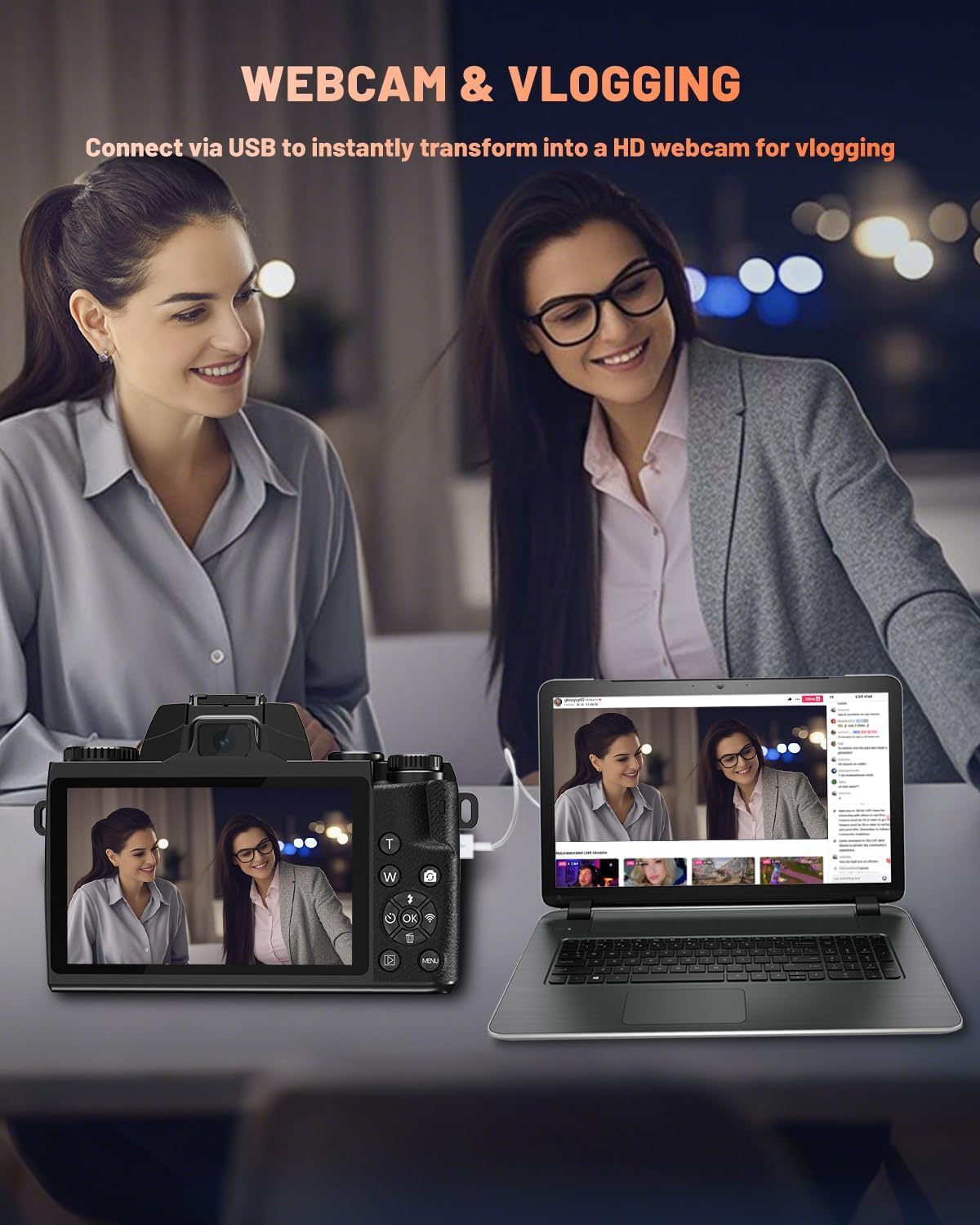 【Webcam & HDMI Output】 The vlog camera doubles as a webcam when connected to your computer via USB, perfect for video calls and live streaming. It also comes with an HDMI output for connecting to TVs or monitors, making it a great choice for both professional setups and home entertainment. The external 1/4-inch tripod support adds stability for all your shooting needs.