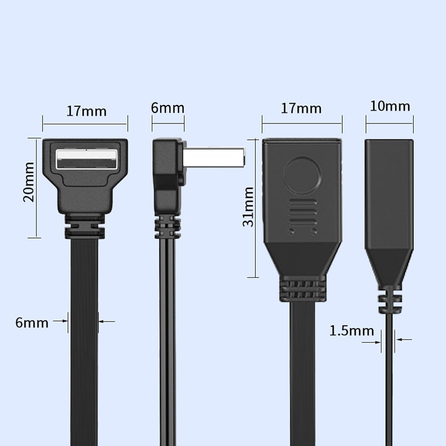 480Mbps Data Sync And 2A Charge: Flat Flexible 90 degree USB extension Cable is standard USB 2.0 wire deliver 480Mbps data transmission speeds, while 2A charging for devices via USB female port. Transfer files, HD movies and songs to your USB devices in seconds