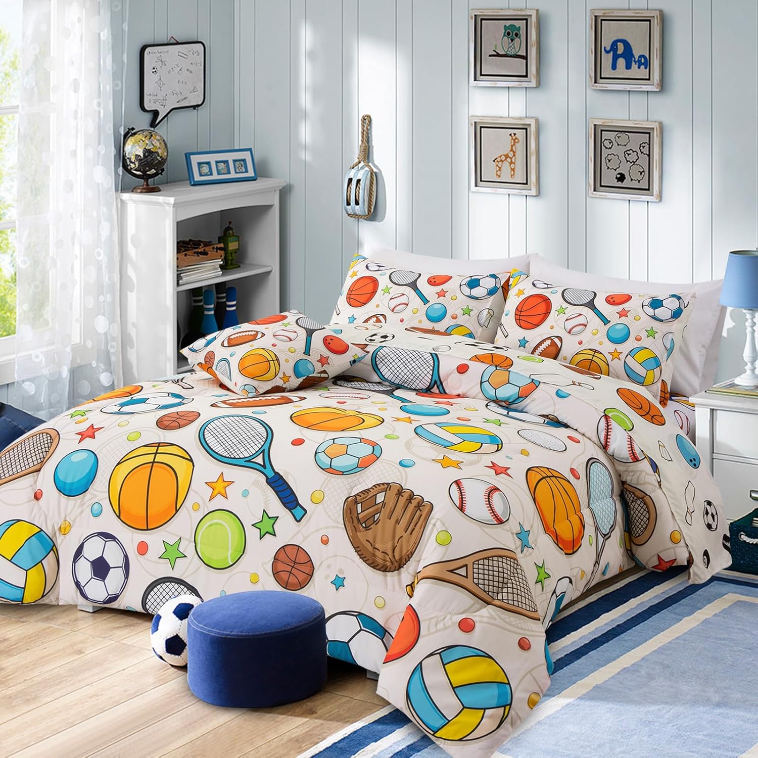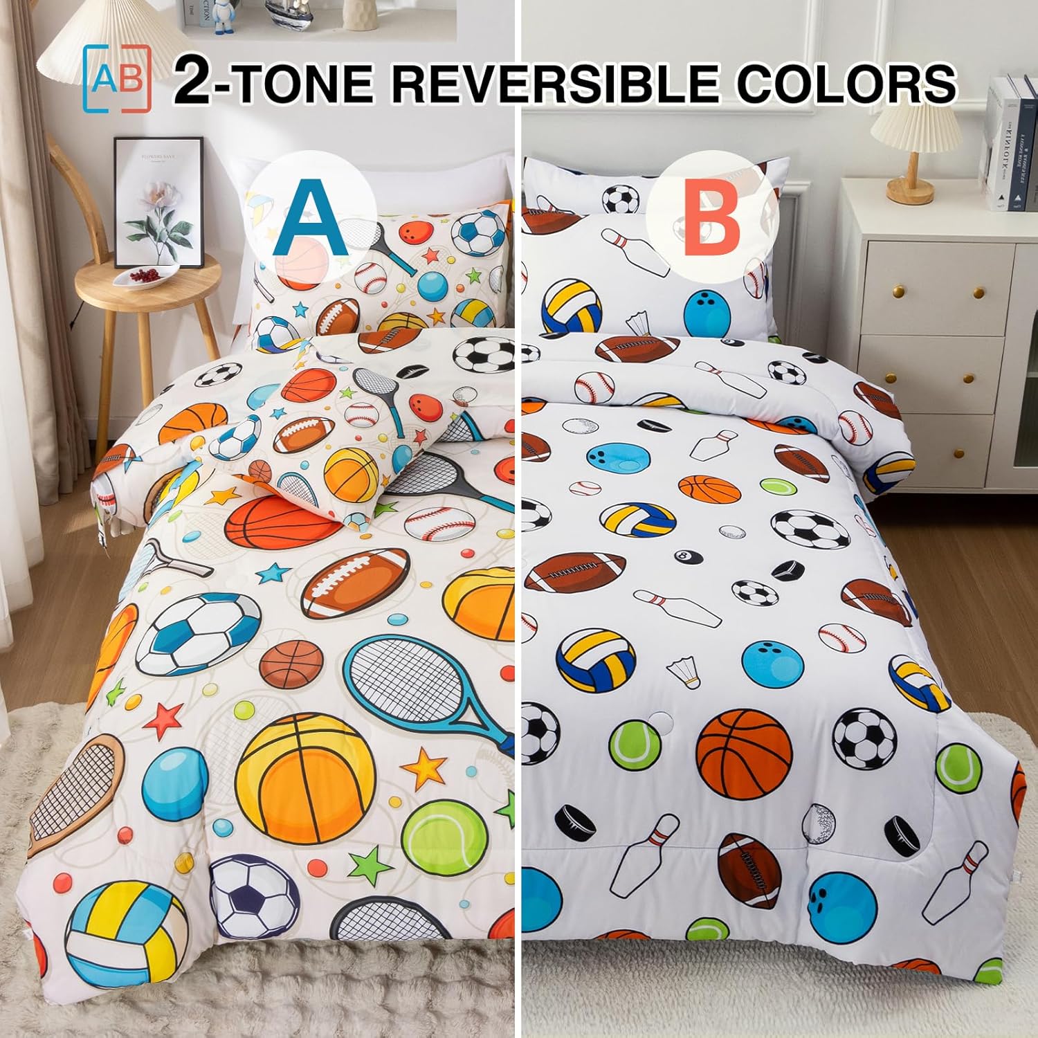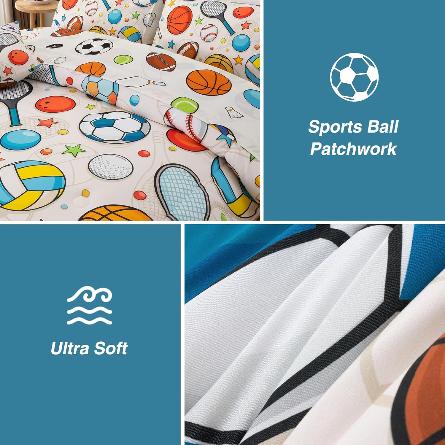 【 Design 】 The comforter features patterns of various sports, with football, rugby, tennis and baseball as the yellow background. This unique set of bedding adds a fashionable touch to your bedroom and is suitable for any room – bedroom, guest room, children’s room, vacation room, making your bedroom look just like those in magazines.