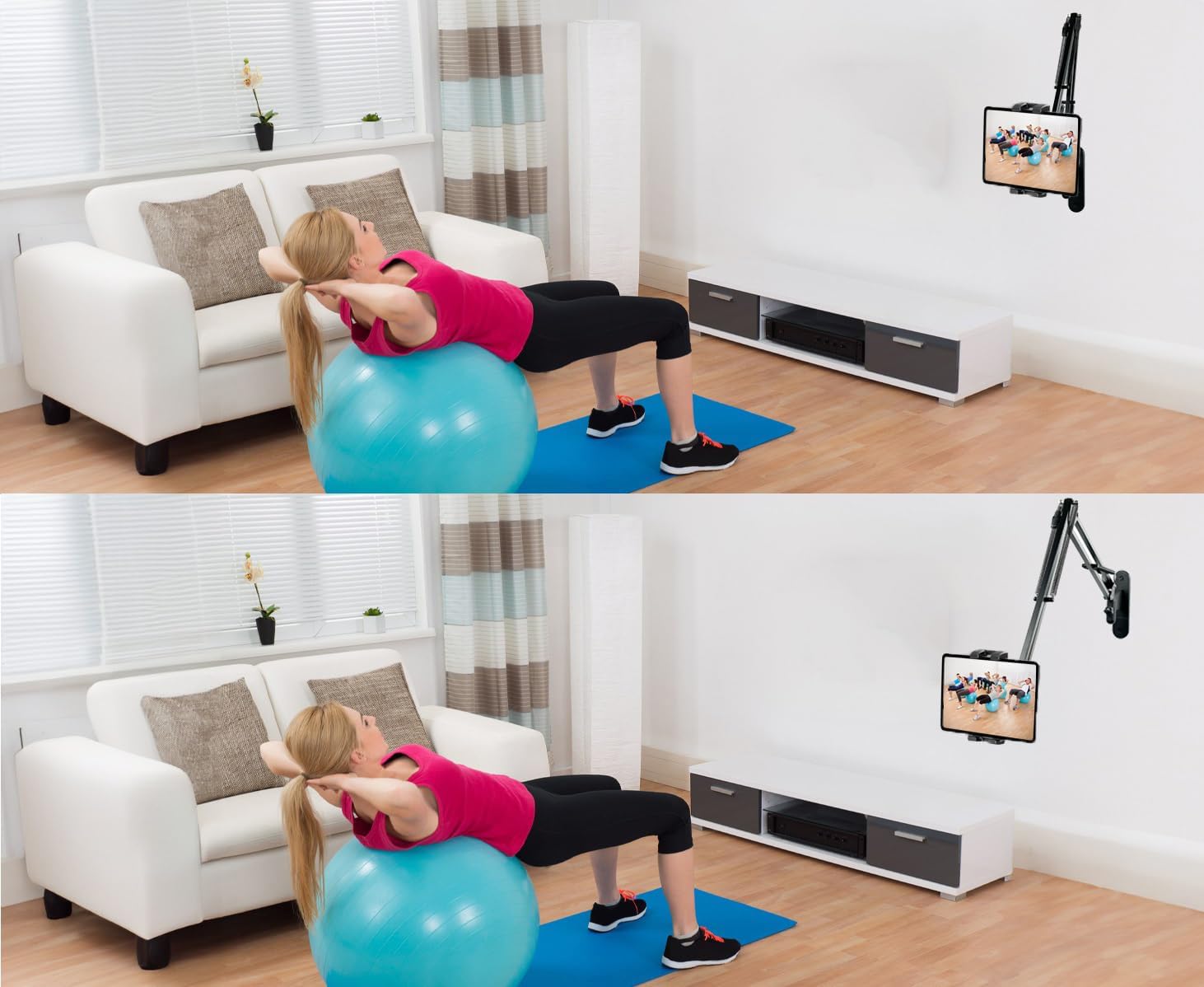 Universal Smartphone Wall Holder: The suspension arm can rotate 360 degrees horizontally in the wall-mounted position and fold 90 degrees vertically. Suspension arm ended with with metal ball-head, it can let your phone holder 360 degree rotating;