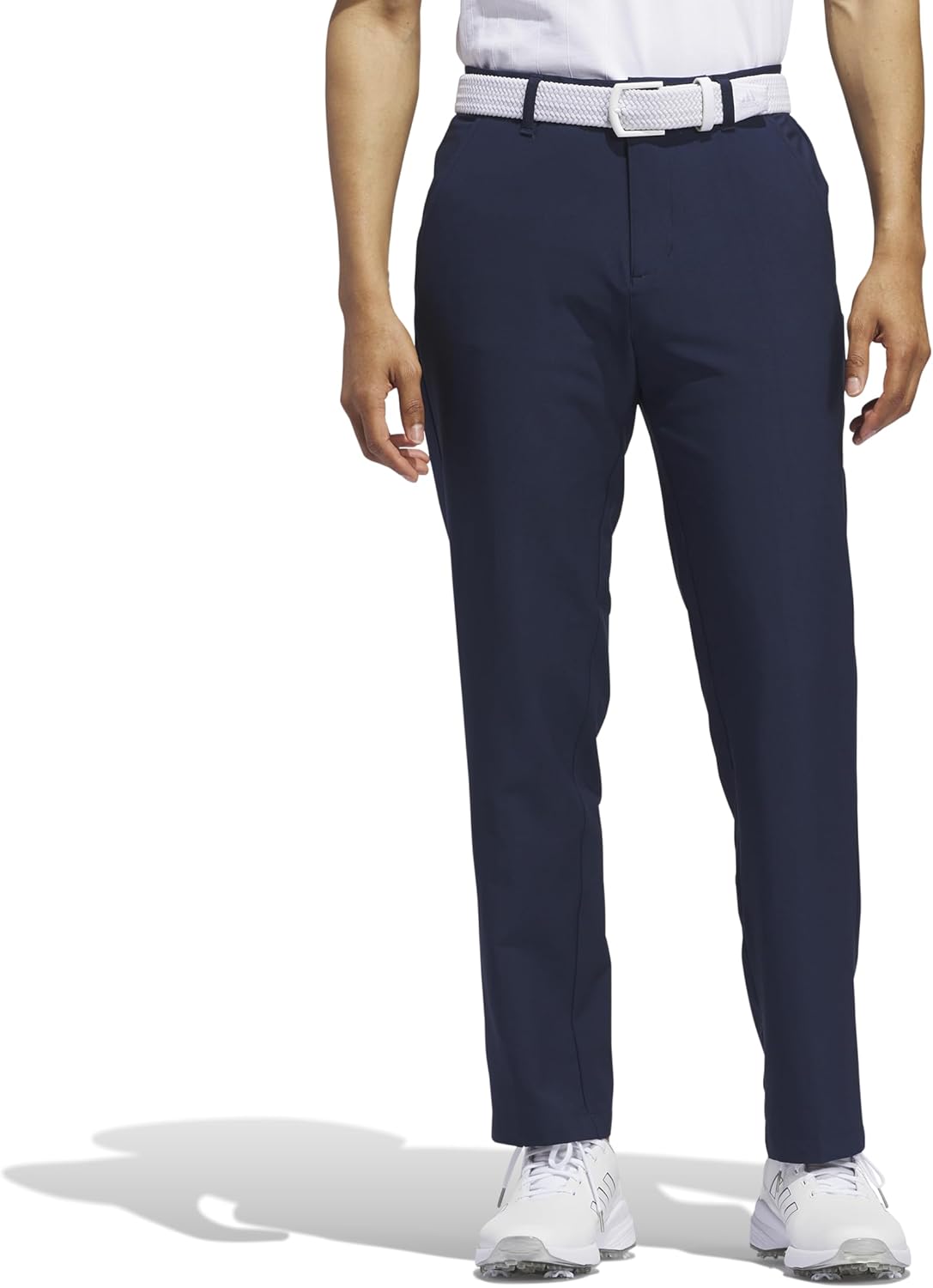 Ultimate style and comfort on the links. These adidas golf pants for men feature a flattering tapered cut plus built-in stretch for freedom of movement while you swing and twist. A durable water-repellent finish helps shield you from light rain, and front and back pockets hold your course essentials.