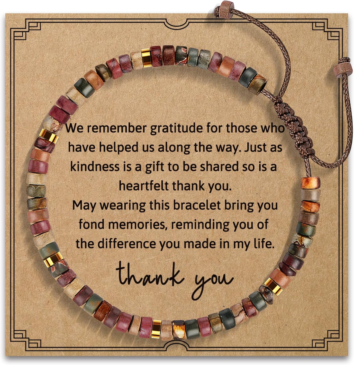 This bracelet is not just a piece of jewelry, but a symbol of gratitude and appreciation. The accompanying card beautifully captures the essence of this accessory. It reminds us to be grateful for those who have supported us throughout our journey and to express our appreciation sincerely.