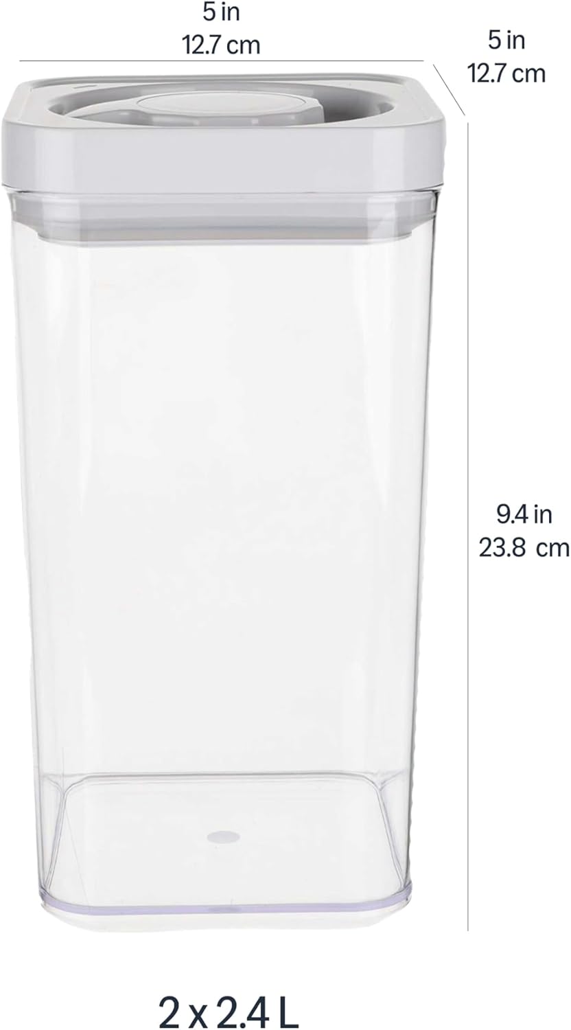 VERSATILE SIZING OPTIONS: The containers come in two of each size: (2) 3.2 quarts, (2) 2.5 quarts, (2) 1.9 quarts, (2) 1.2 quarts and (2) 0.5 quarts sizes to suit various needs, great for kitchen pantry organizers and storage